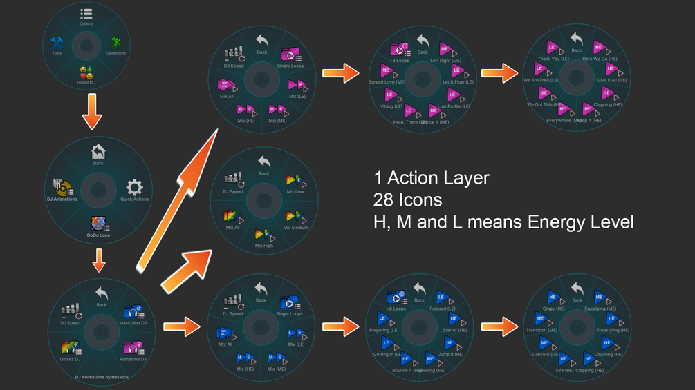 - All animations are labeled and organized by Energy. Low, Medium and High.